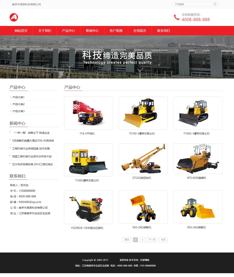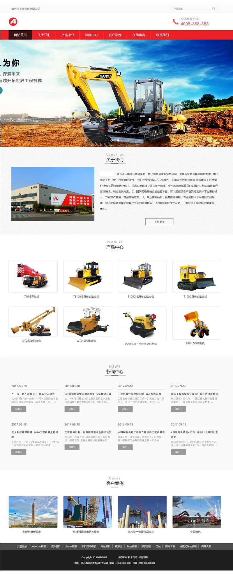 (自适应手机版)响应式工程机械挖土机设备网站织梦模板 HTML5机械土木工程设备网站源码