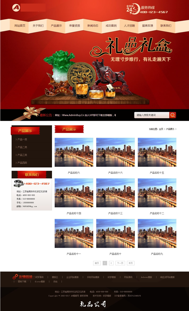 3、适用于礼品包装模版、印刷纸业网站源码;