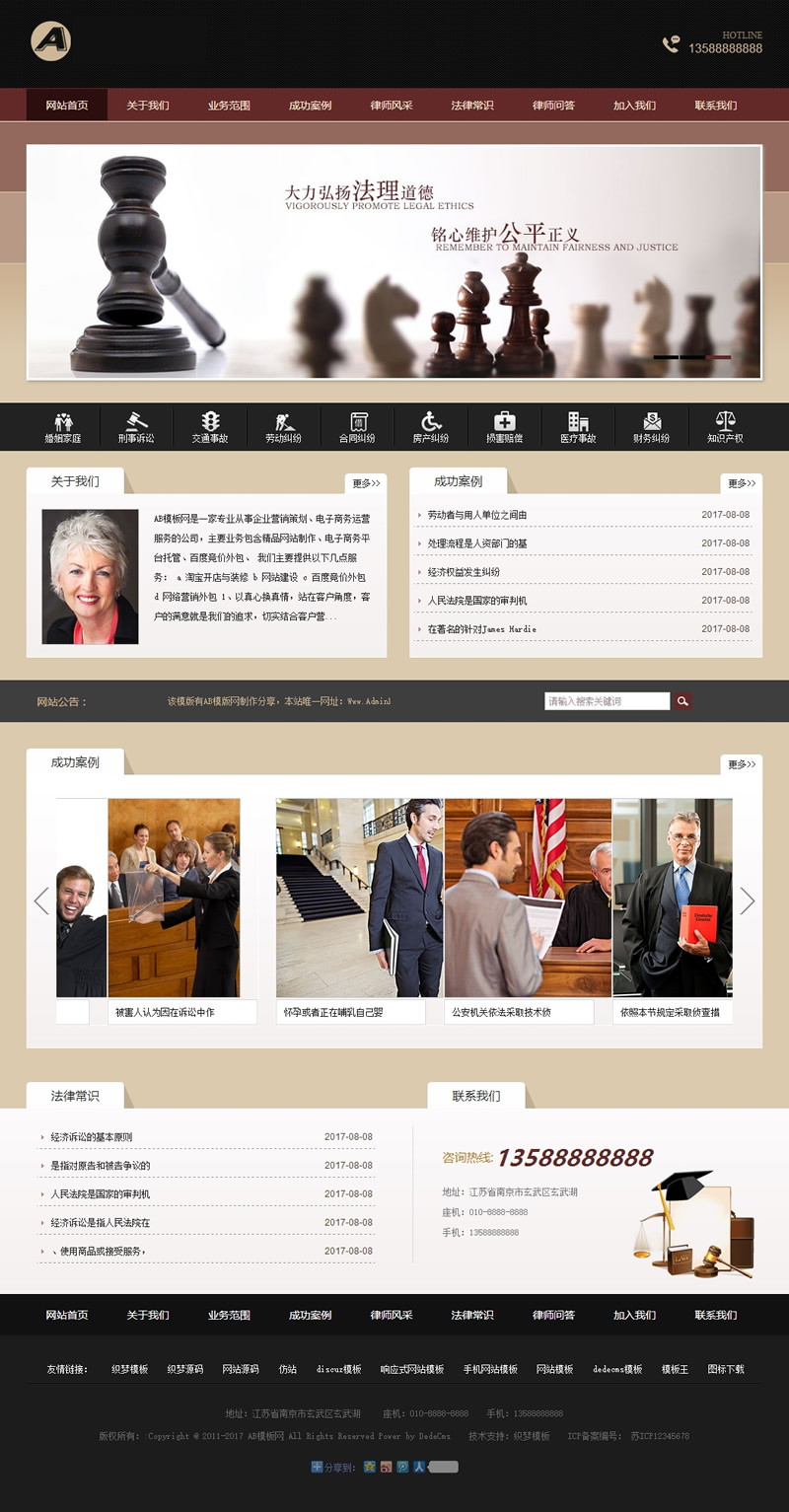 (带手机版数据同步)律师事务所资讯类网站织梦模板 法律援助知识个人律师网站源码