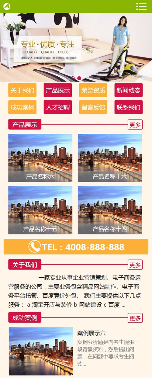 (带手机版数据同步)家庭保洁油烟管道清洗类网站织梦模板 家政保洁服务公司网站源码