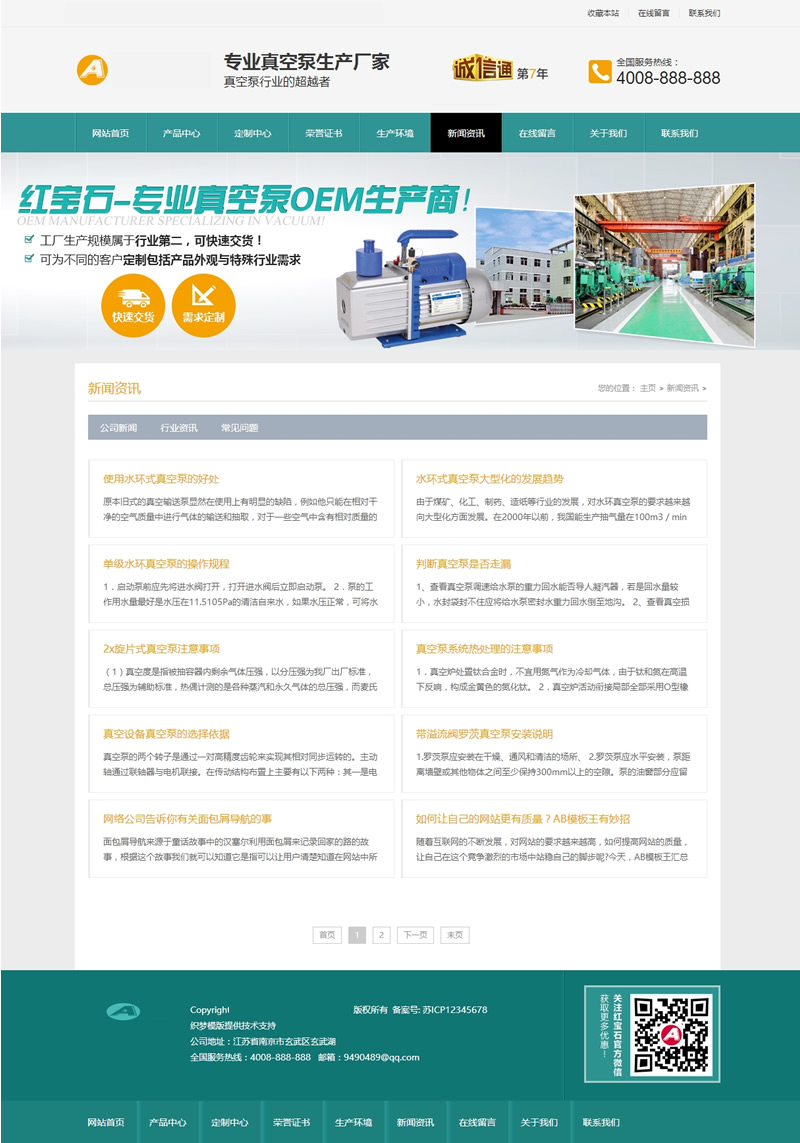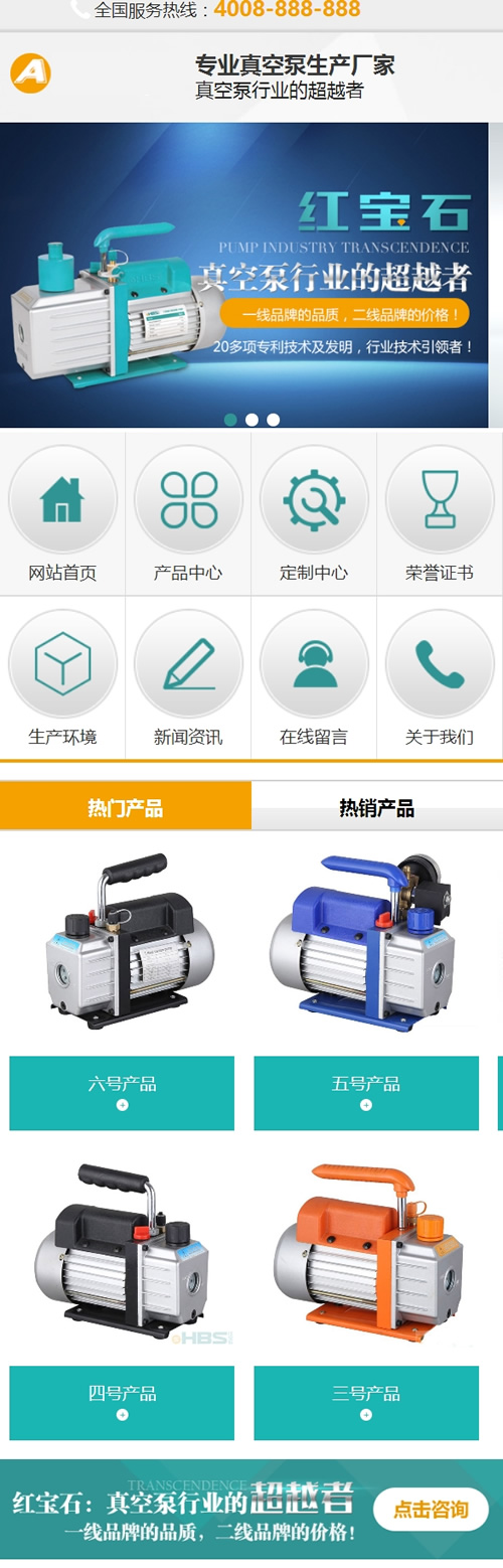 3、适用于泵业机械、营销型模版;