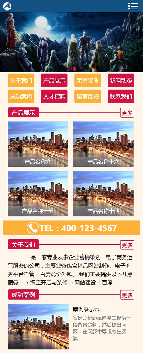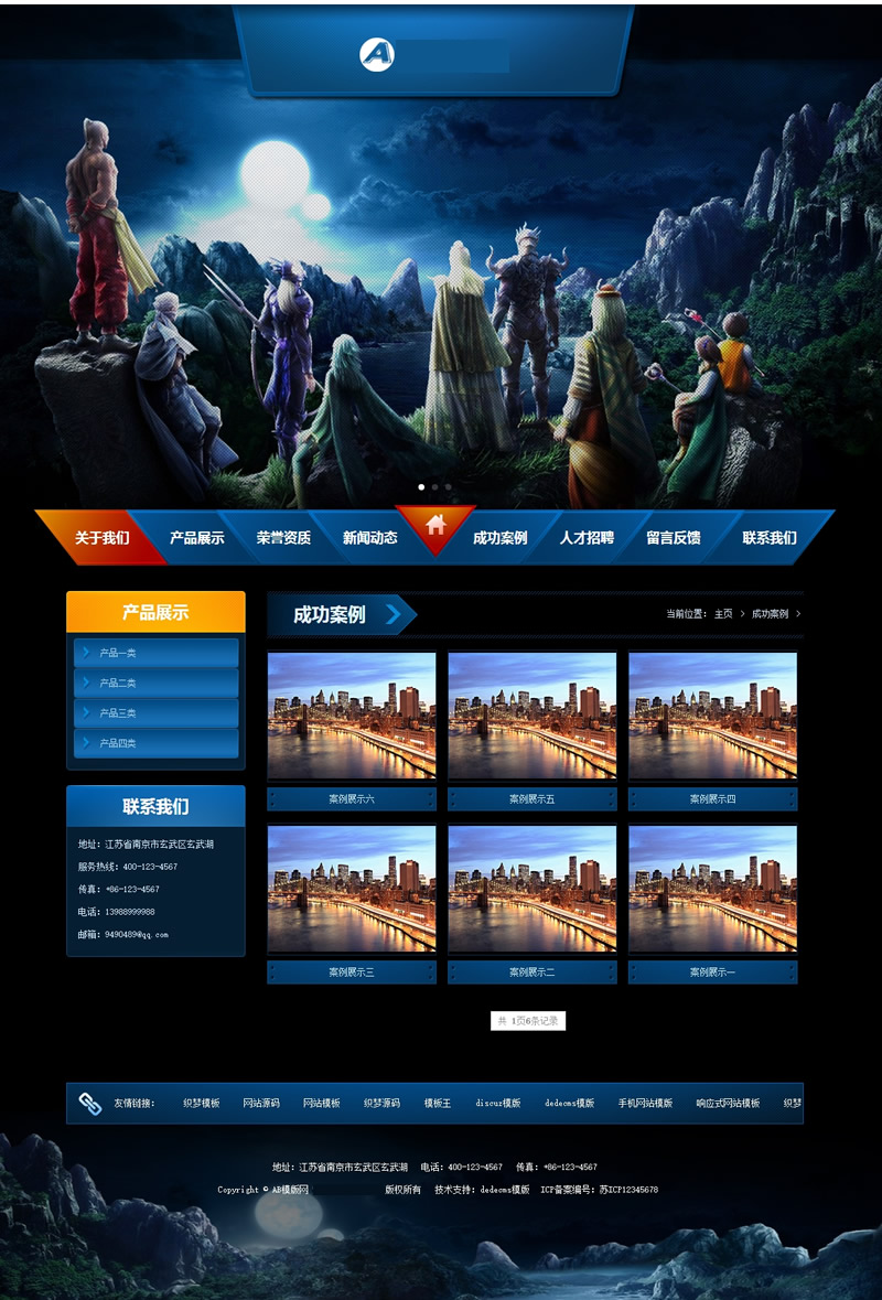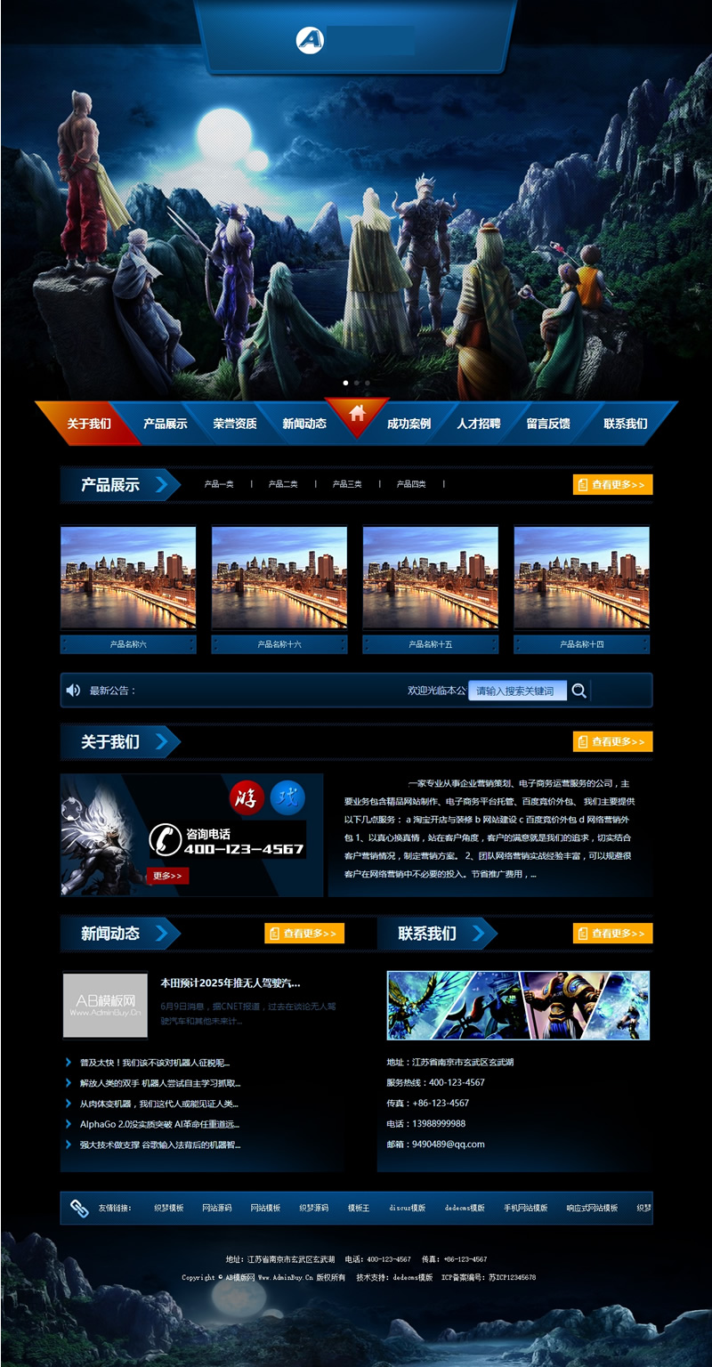 2、效果相当的炫酷,相当简洁大气高端,模板简单,全部已数据调用,只需后台修改栏目名称即可