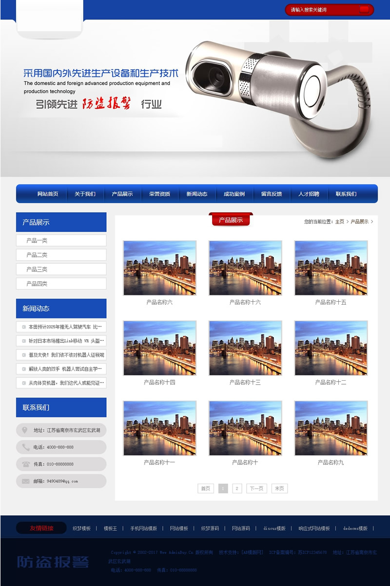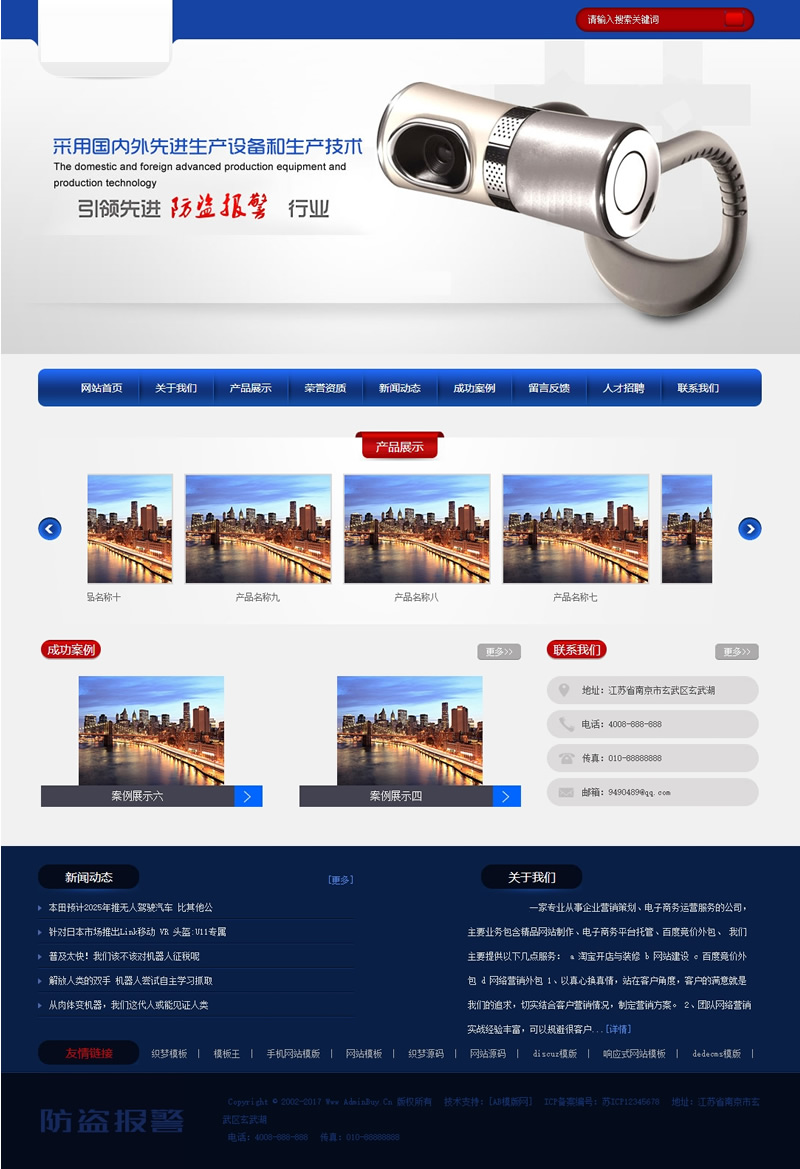 (带手机版数据同步)生产设备防盗报警类网站织梦模板 警报安防锁类设备网站源码