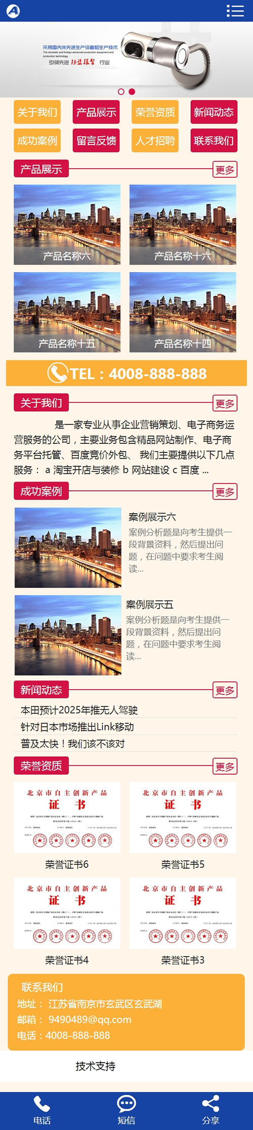 2、效果相当的炫酷,相当简洁大气高端,模板简单,全部已数据调用,只需后台修改栏目名称即可