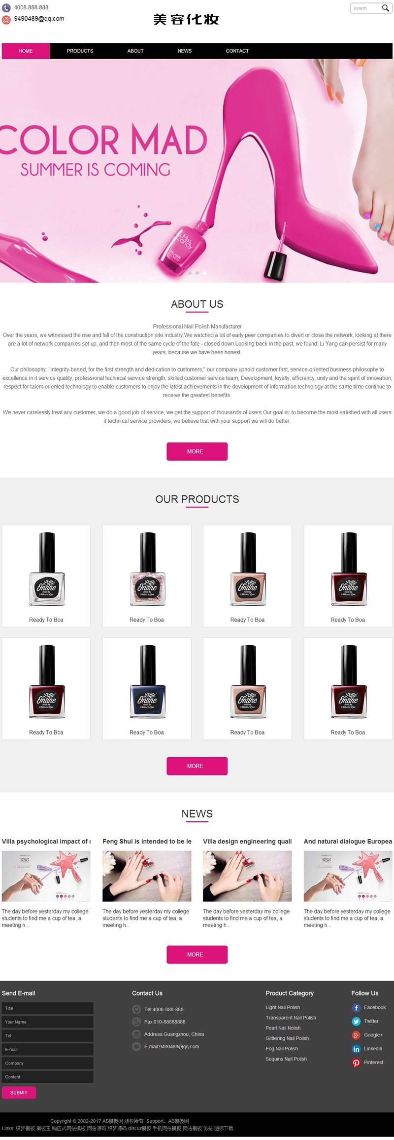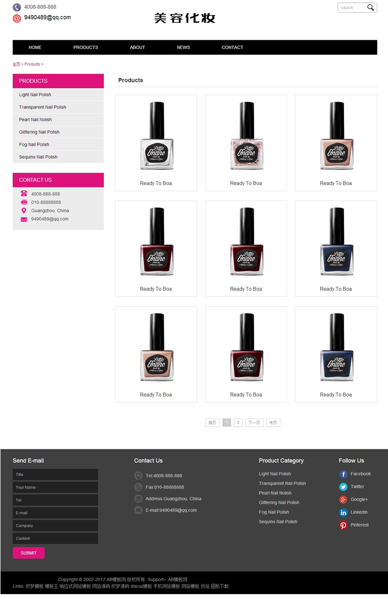 (自适应手机版)html5响应式外贸网站源码 英文版化妆美容产品网站织梦模板