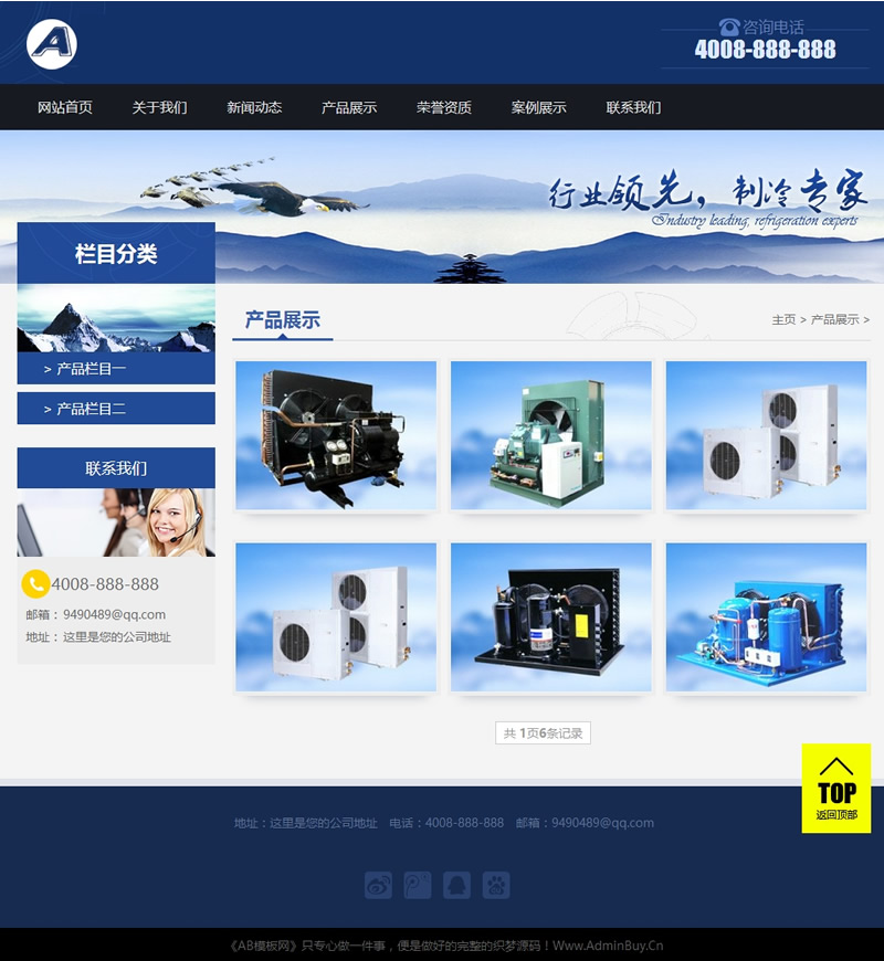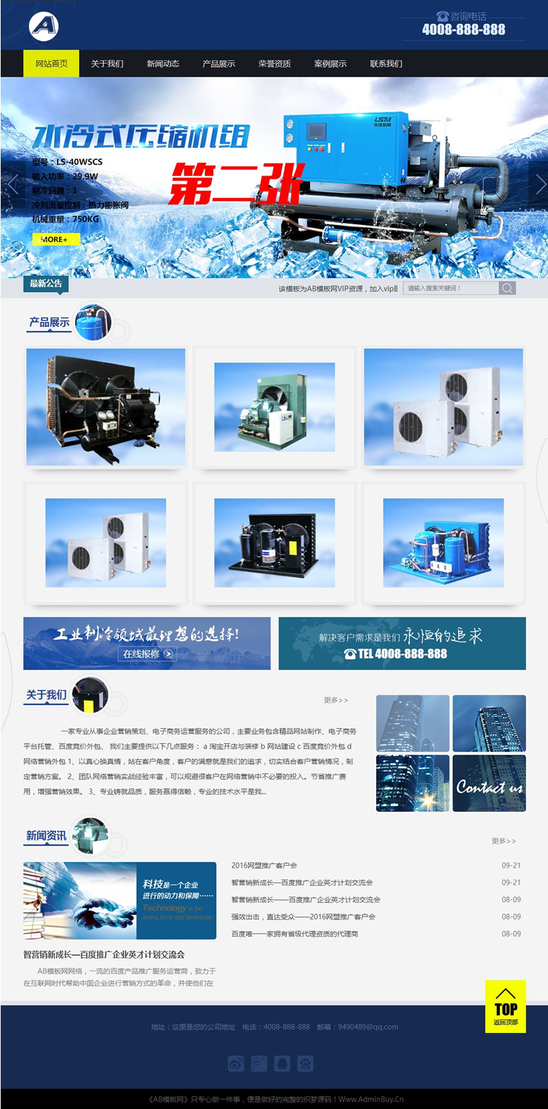 (带手机版数据同步)蓝色制冷机械设备织梦网站源码dedecms模板