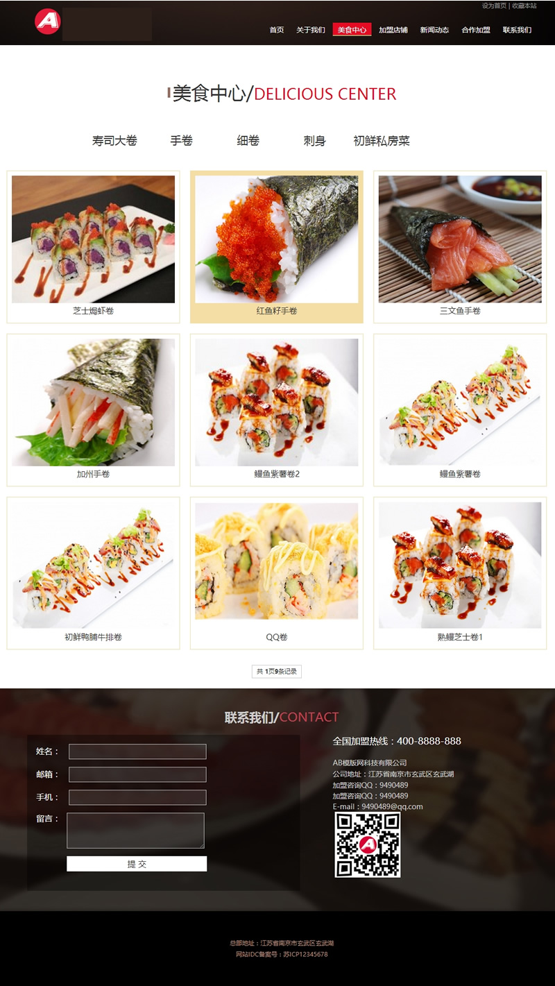 (带手机版数据同步)寿司料理网站源码 餐饮连锁管理企业织梦dedecms模板