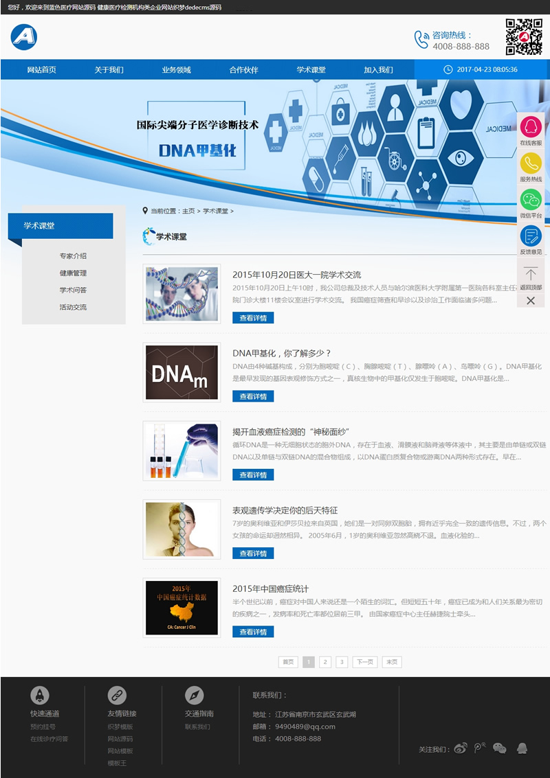 蓝色医疗网站源码 健康医疗检测机构类企业网站织梦dedecms源码