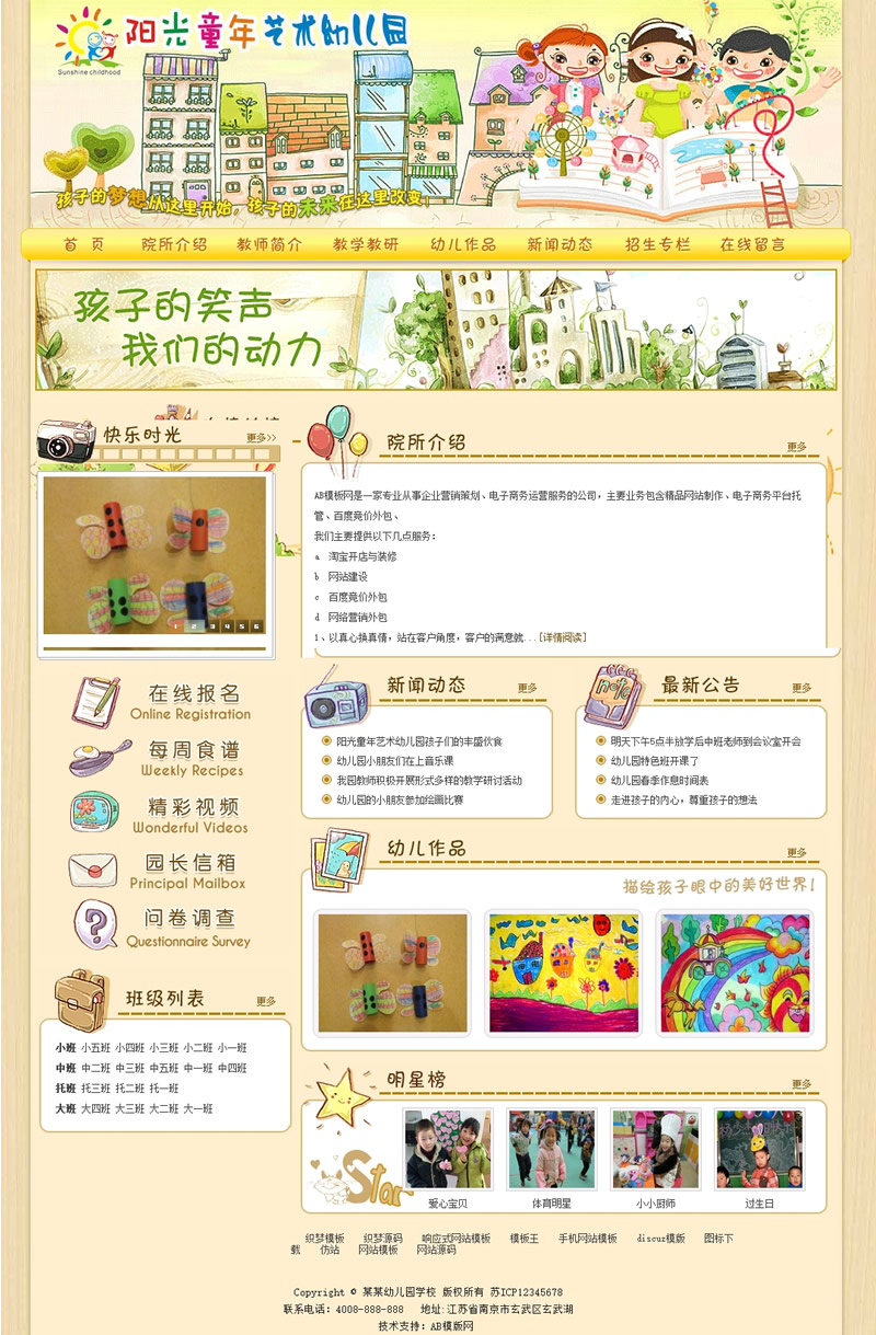 (带手机版数据同步)童年艺术幼儿园学校类网站模板 幼教学校类织梦网站模版