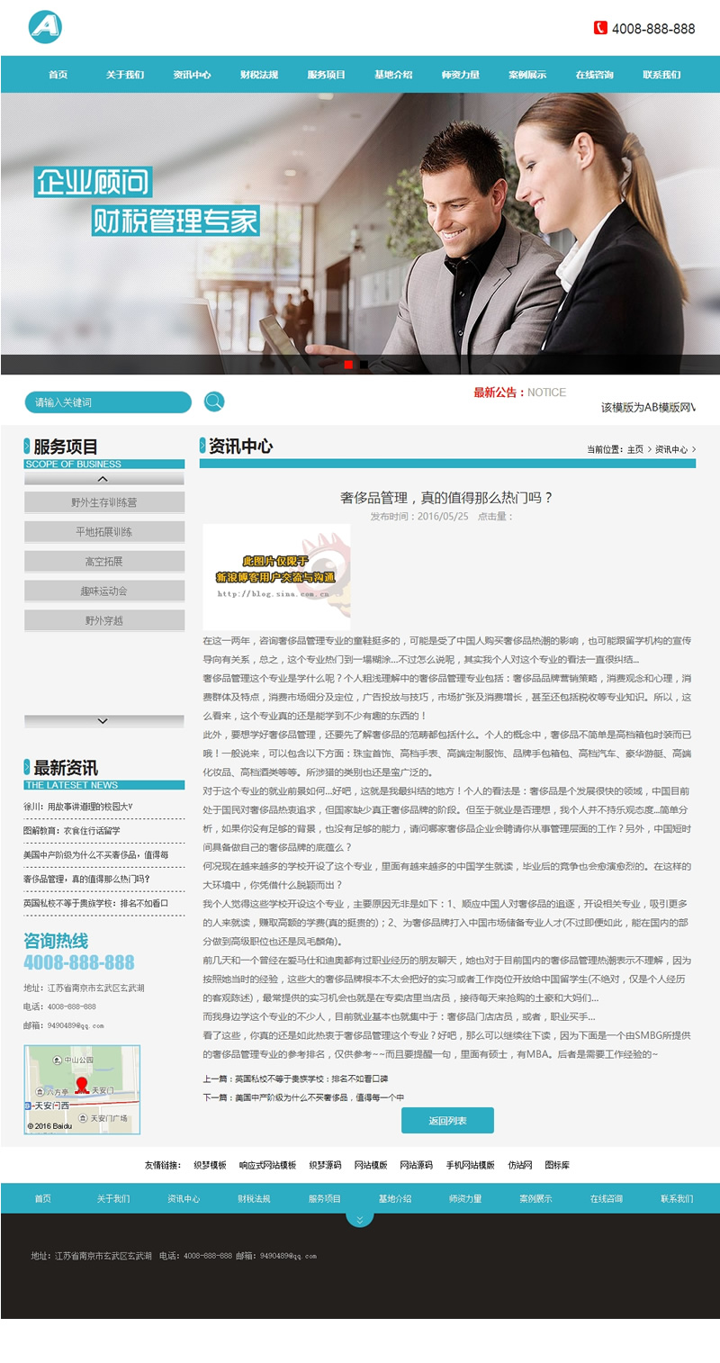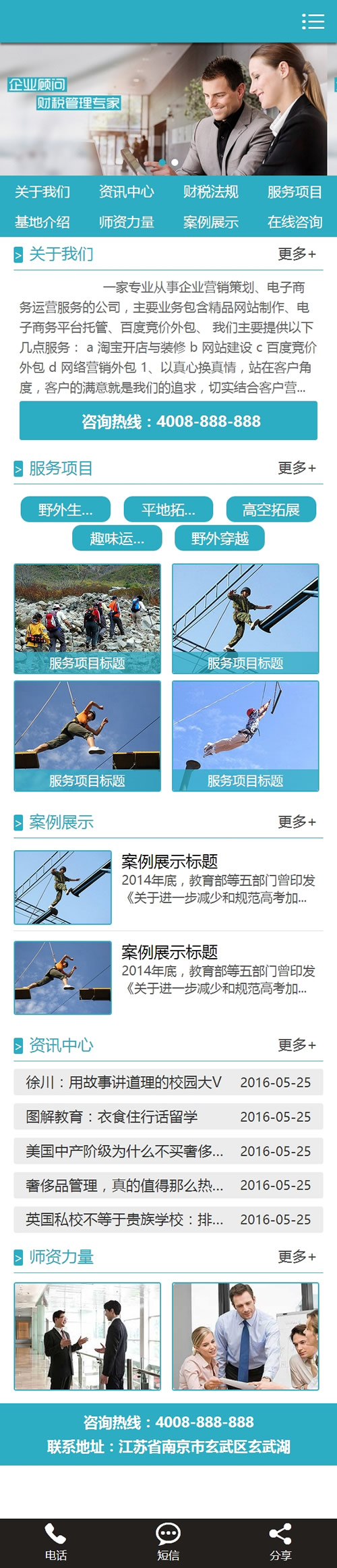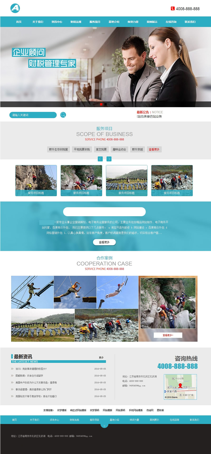 (带手机版数据同步)蓝色风格商务类型网站源码 野外拓展服务行业织梦模板