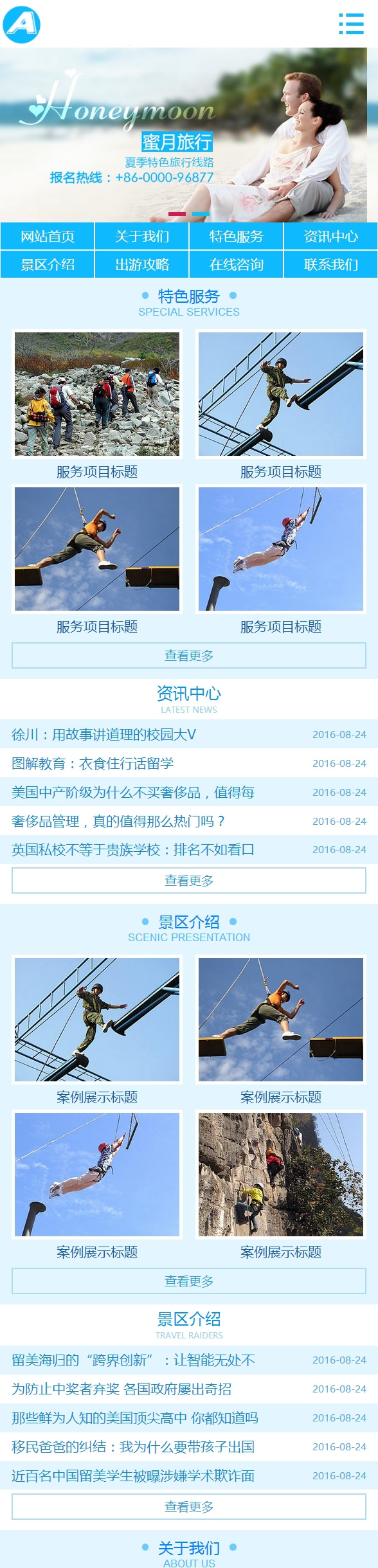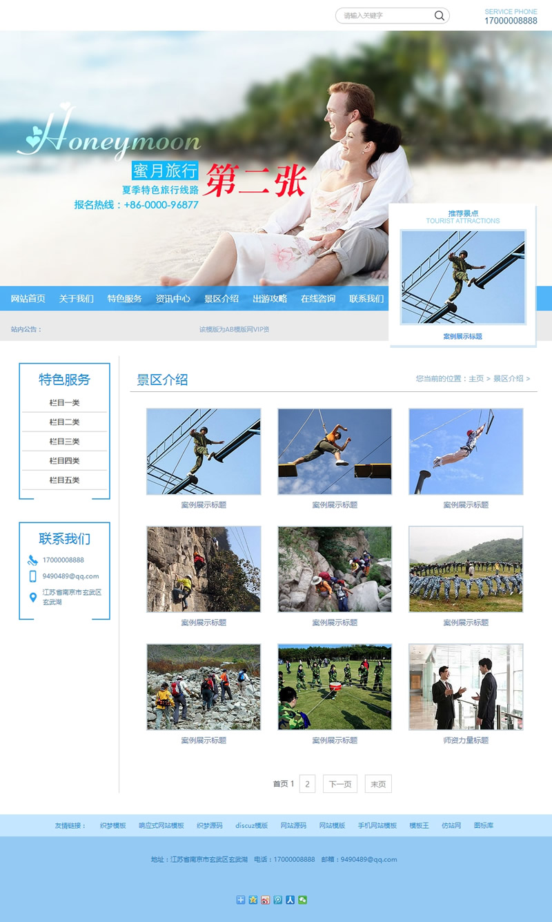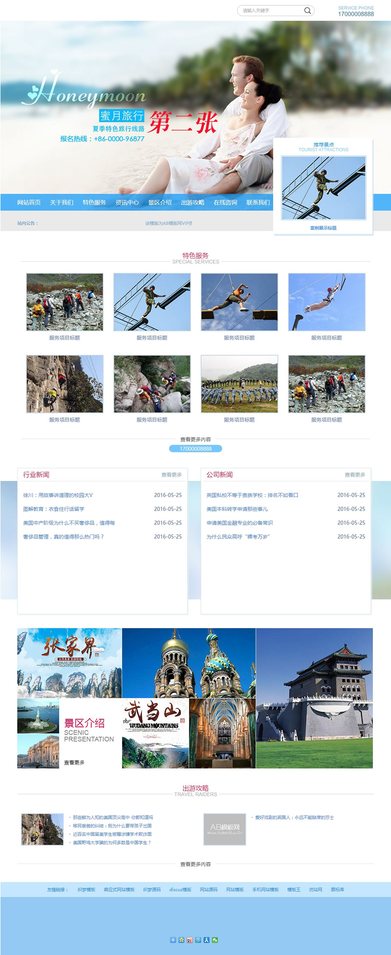 (带手机版数据同步)海蓝色蜜月旅行景区旅游企业织梦模板