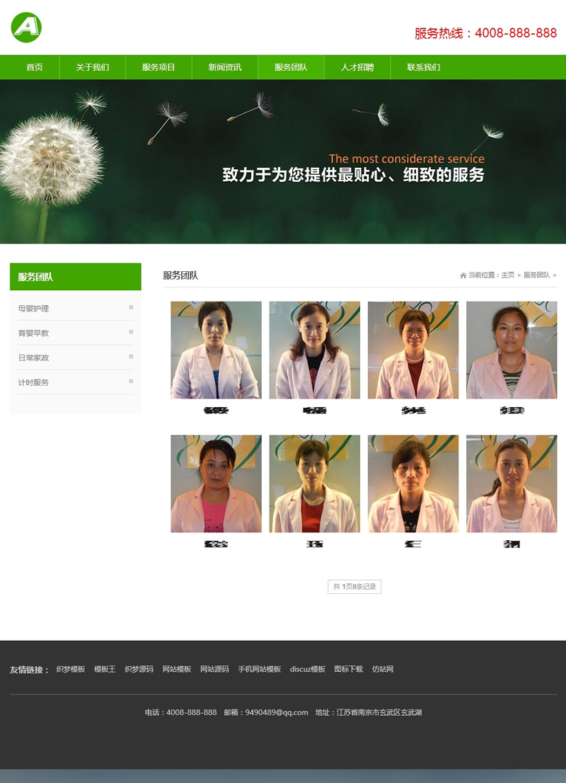 (自适应手机版)家政公司网站源码 家政育婴服务类织梦网站模板
