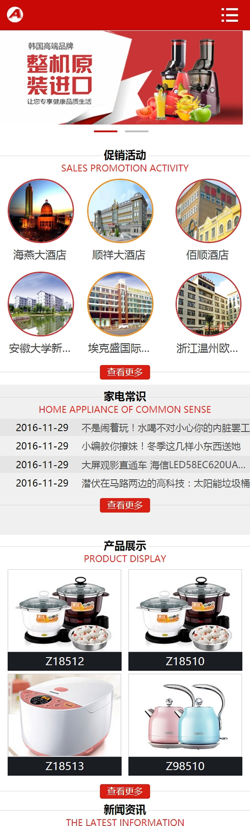 (带手机版数据同步)家用电器网站源码 智能小家电电器类网站织梦模板