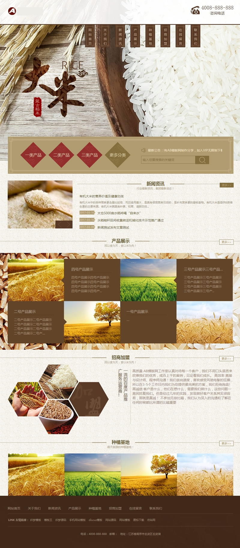 绿色有机大米网站源码 谷类农作物农业网站织梦模板