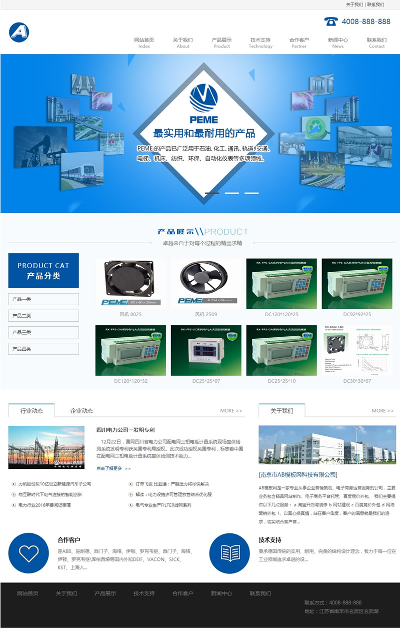 2、效果相当的炫酷,相当简洁大气高端,模板简单,全部已数据调用,只需后台修改栏目名称即可