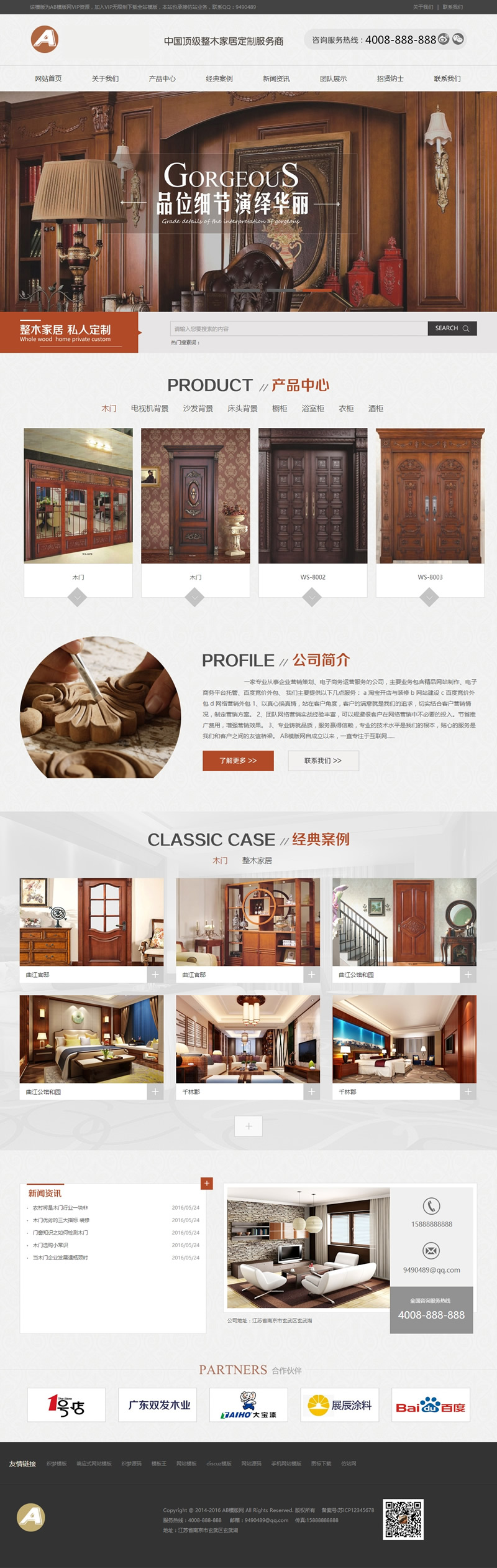 (带手机版数据同步)古典复古木材木门网站源码 门业木业类网站织梦模板