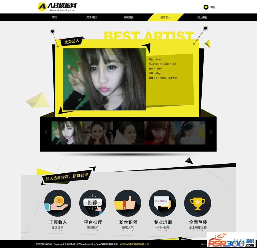 2、效果相当的炫酷,相当简洁大气高端,模板简单,全部已数据调用,只需后台修改栏目名称即可