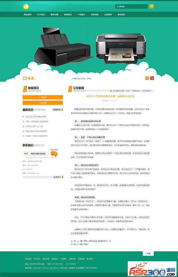 绿色小清新印刷公司织梦源码