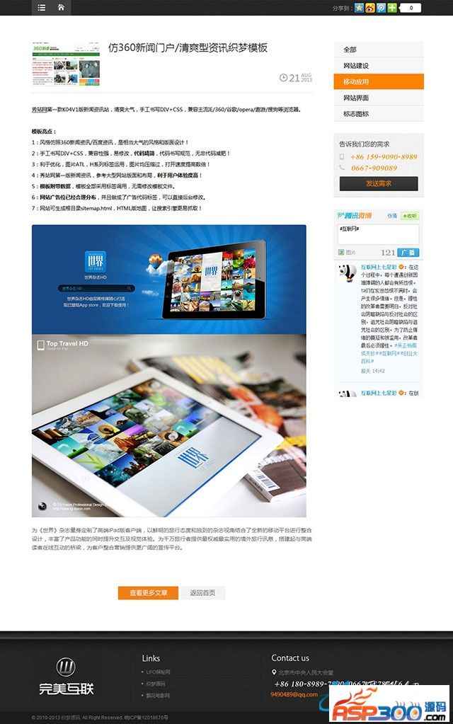 给大家分享的是最新黑色大气html5网络建站工作室源码 +网络工作室网站源码+简洁大气+织梦内核(dedecms),很不错!