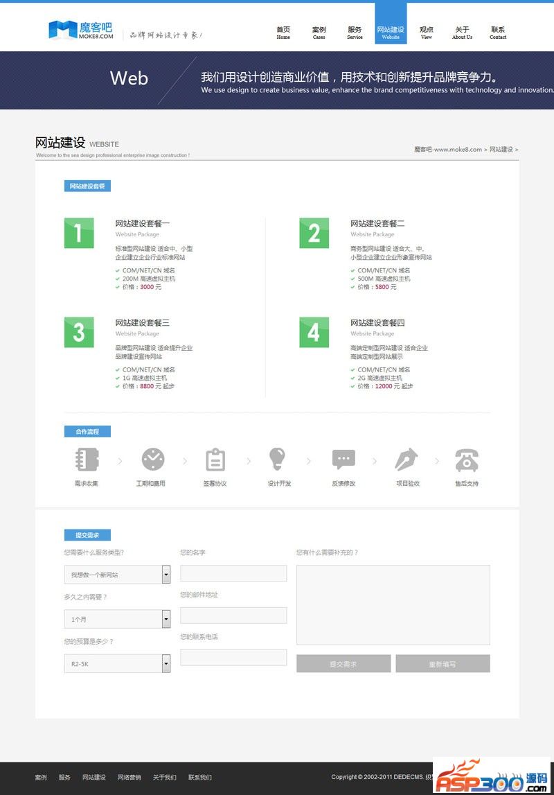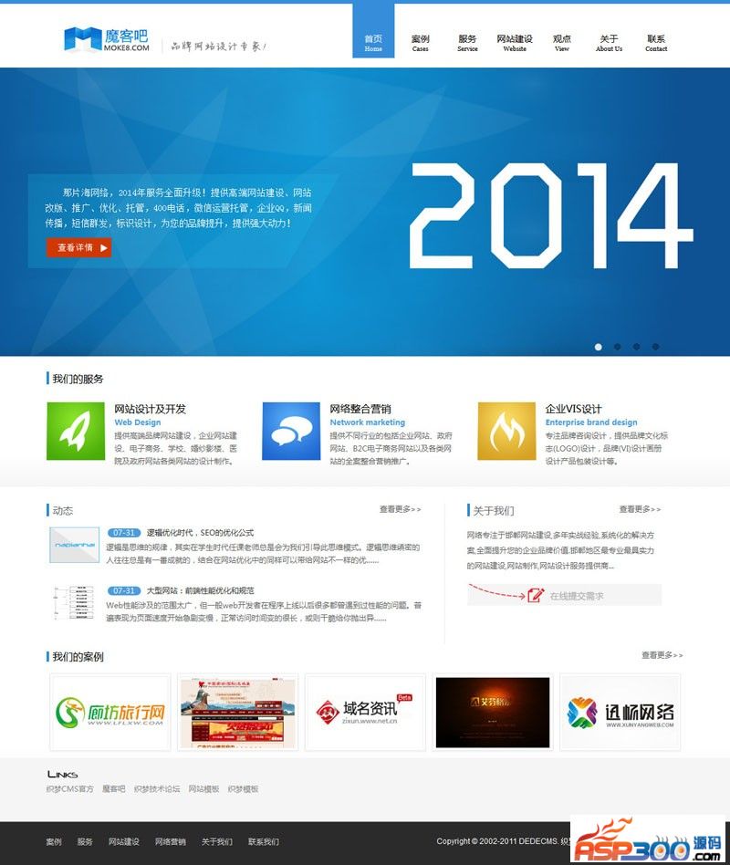 蓝色网站设计公司dedecms模板页面设计感强,交换性强,很适合网络公司实用。个人觉的此套模板的亮点在于导航的设计,个性漂亮,很有辨识度。整站采用了扁平化的设计,但又不失大气。配套的页面也是相当的完善的,是套整合型的全新网站。联系我们,关于我们,服务,观点等页面的内容需要大家自行打开模板文件进行修改。模板文件位于templets/keyinzy下,带有about字样的htm文件是关于我们页面,带有contact字样的htm文件是联系我们页面,其它的页面以此类推。整站源码经过魔客吧本地测试和调试,所有页面功能完整无错,大家可放心下载使用!