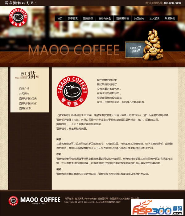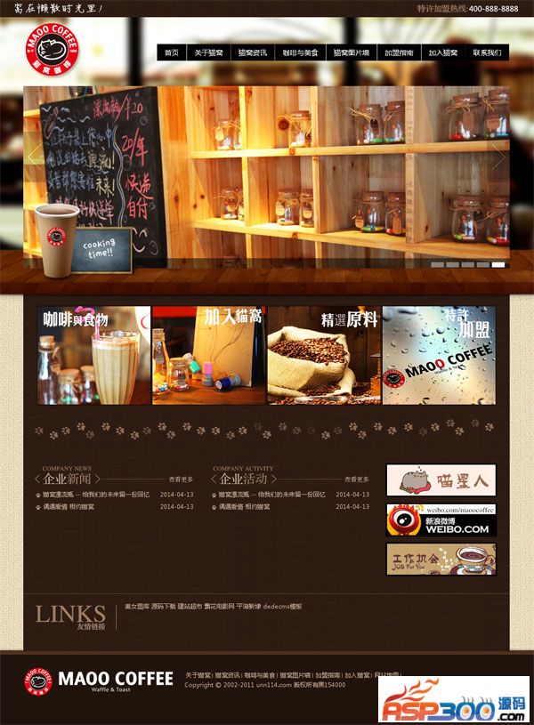 温馨精美咖啡店源码 咖啡店网站源码下载