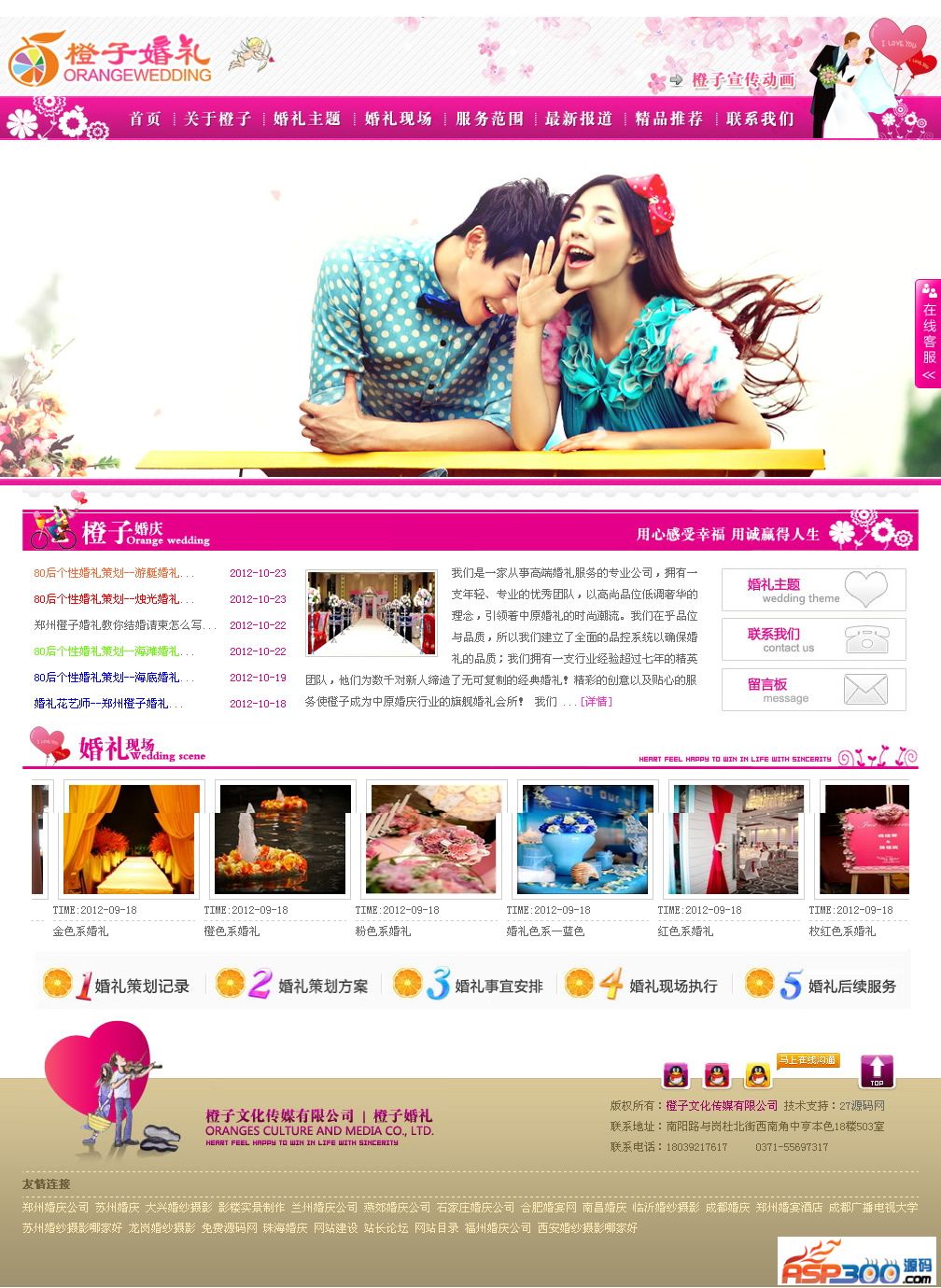源码介绍:郑州某婚庆公司网站源码橙子婚庆企业网站商业源码,绝对超级漂亮的一款源码,百分百一手源码!各方面的设计都高水准大师级标准。SEO优化做的也绝对不在话下,原站的权重也是在PR2以上,百度权重同样也很高,一个公司企业网站有如此权重已经非常罕见了。关键在于网站本身所提现的用户体验度就很高,业务转化率也高,所以你选择这款源码用来作为婚庆公司网站源码绝对是个不错的选择!