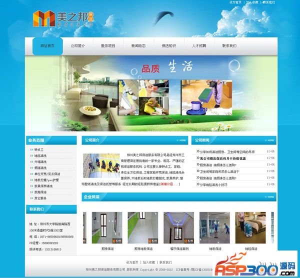 基本说明:织梦淡蓝色企业公司模板清新简洁保洁公司源码,适合各种企业网站:包装机械、保洁公司、产品展示网站。