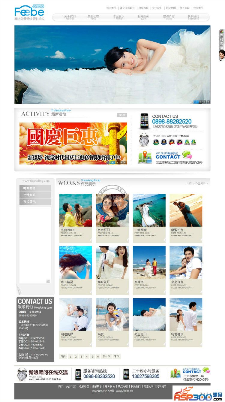 源码说明:海南某婚纱摄影公司网站源码整站打包,白色经典风格,CSS+DIV设计,非常漂亮。后台功能强大,整站带完整图片数据。模板测试修复各个部位错误问题。目前完整无错,检测无木马后门,可放心使用。源码采用织梦dedecms内核基于php+mysql制作,操作简单,安装方便,适合新手建站。