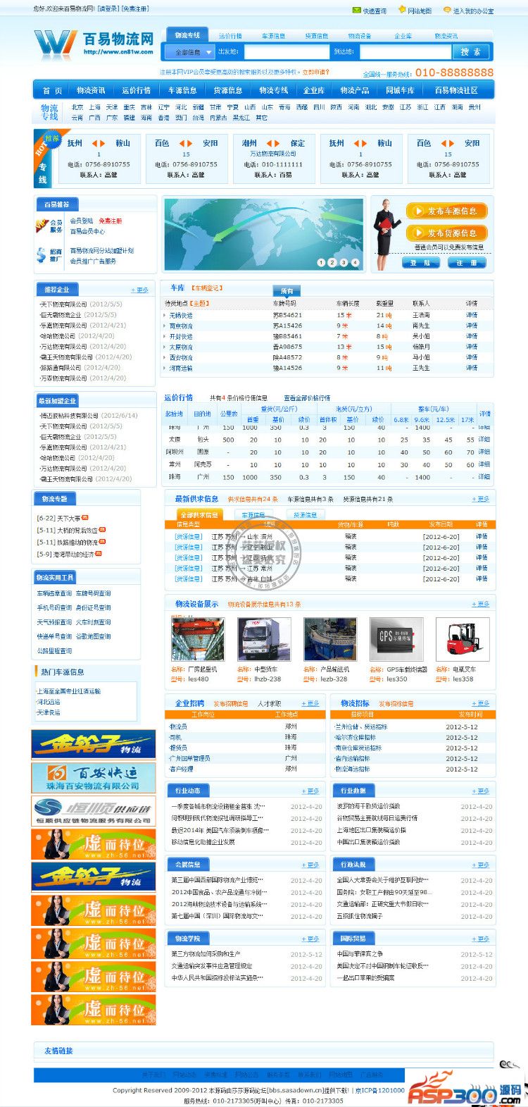 源码说明:百易物流网打造中国领先地方物流信息平台,加速推进物流信息化进程。百易物流网为用户提供覆盖全国范围的物流及相关增值服务,包括在线商机搜索,订单跟踪管理,运价行情查询,物流人生论坛等一系列贴心服务。用户足不出户,在体验信息化物流带来的便捷与安全的同时,还可掌握第一手物流交易信息,轻松开发无限商机!物流公司企业网站源码采用ASP+ACC环境开发,功能完整,模板非常漂亮大方,程序带有几十个快递公司的快递查询功能,值得大家收藏学习。