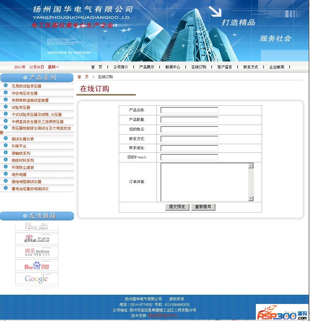 带产品展示及产品订购模块。