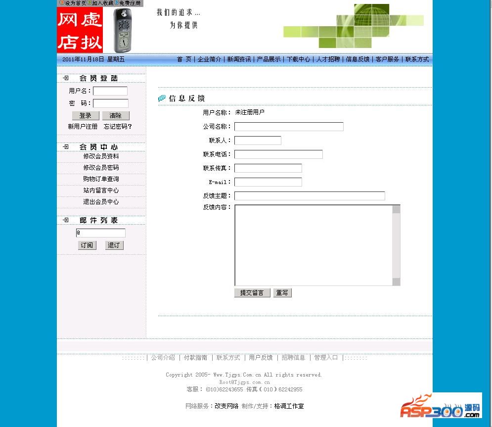 七、留言管理:管理信息反馈及注册会员的留言,注册会员的留言可在线回复,未注册会员可使用在线发信功能给于答复。