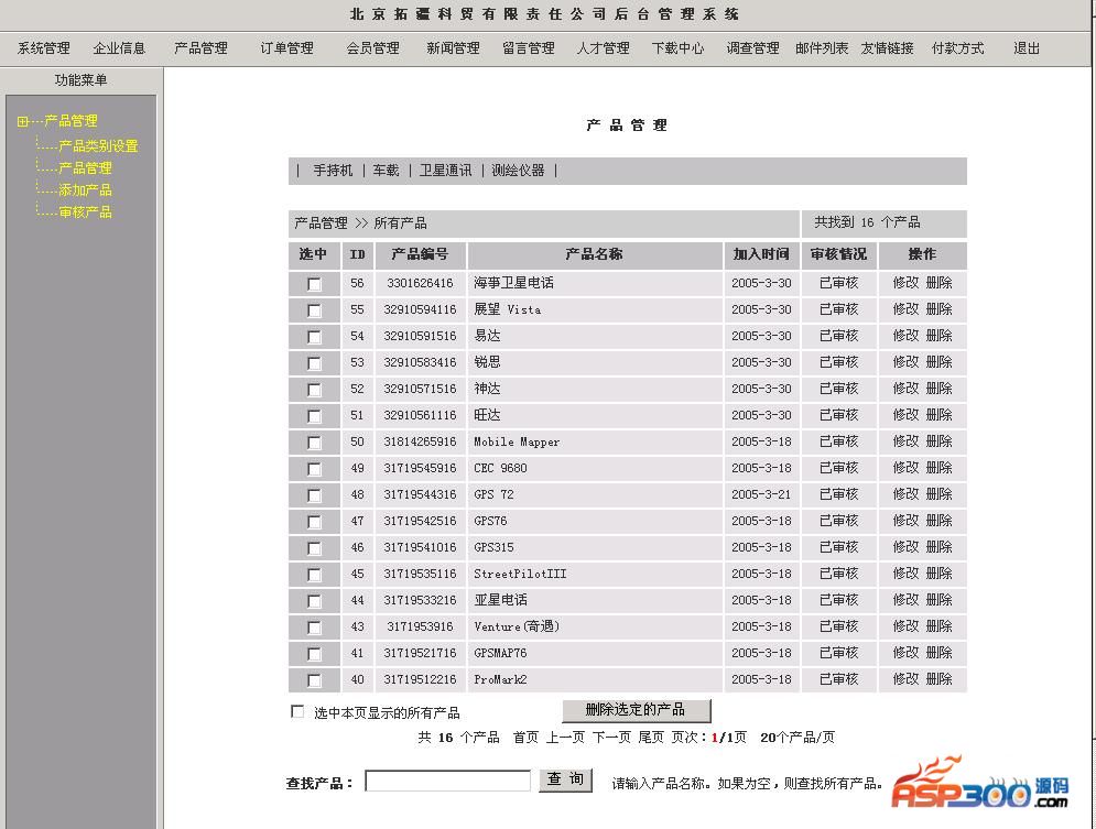 一、系统管理:管理员管理,可以新增管理员及修改管理员密码;数据库备份,为保证您的数据安全本系统采用了数据库备份功能;上传文件管理,管理你增加产品时上传的图片及其他文件。