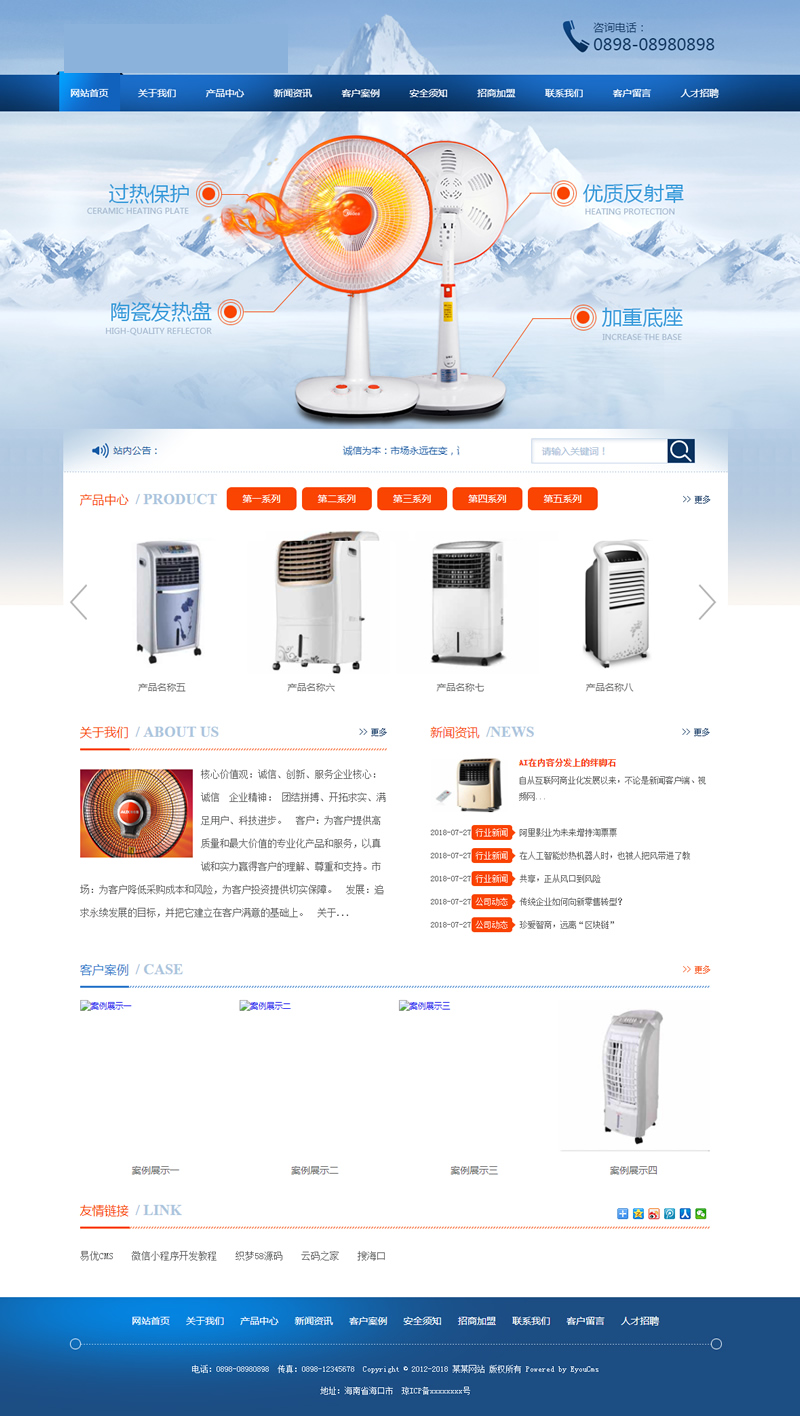 PHP源码_EyouCMSE响应式电暖扇空调扇小家电网站模板