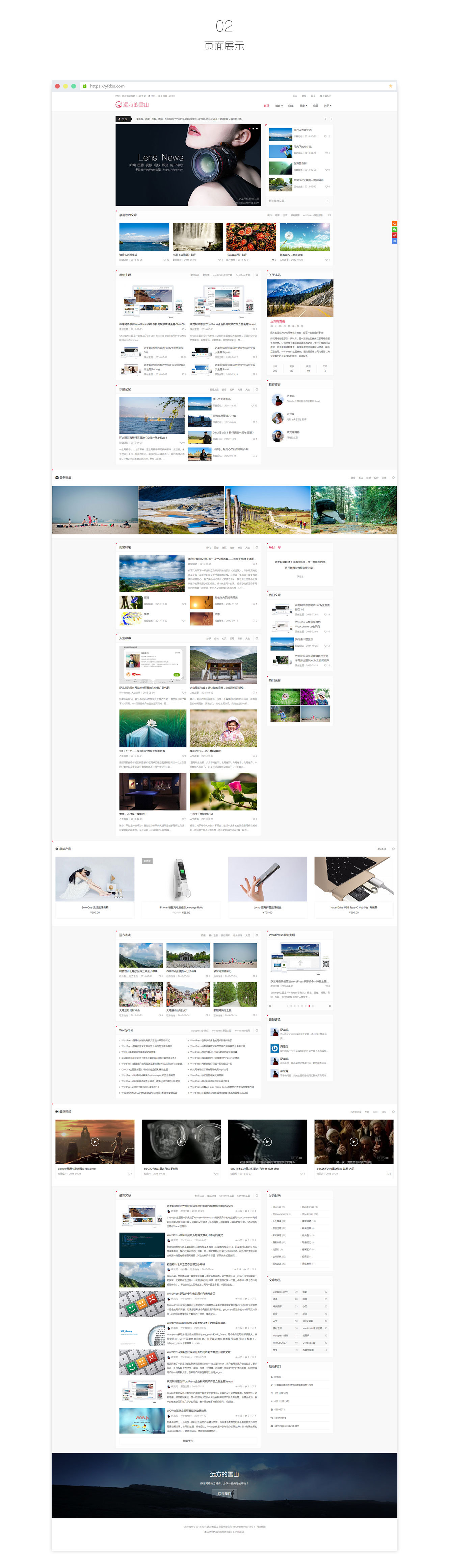 LensNews是一款新闻、画廊、视频、商城、积分和用户中心的多功能CMS主题,添加了众多功能和优化,响应式、多自定义类型文章、文章点赞、文章收藏、弹窗登录、简繁体切换、AJAX加载更多、图片延迟加载、CSS3滚动动画、外链跳转、SMTP邮件发送、禁止复制与右键,注册、点赞、收藏、购物、发布文章等都可以获得相应的积分等等功能,每个模块都精心设计和调试。