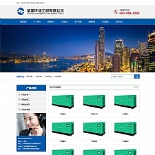 (自适应手机端)蓝色html5环保设备网站源码 响应式环境工程设备pbootcms网站模板