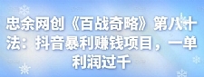 忠余网创《百战奇略》第八十法:抖音暴利赚钱项目,一单利润过千