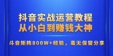 抖音实战运营教程:从小白到赚钱大神,斗音矩阵800W+经验,毫无保留分享