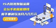 15天短视频掘金营:会玩手机就能赚钱,新手暴利玩法月入几万元(15节课)
