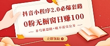 抖音小程序2.0必爆套路0粉无橱窗日赚100(养号新思路+破不适宜公开)无水印