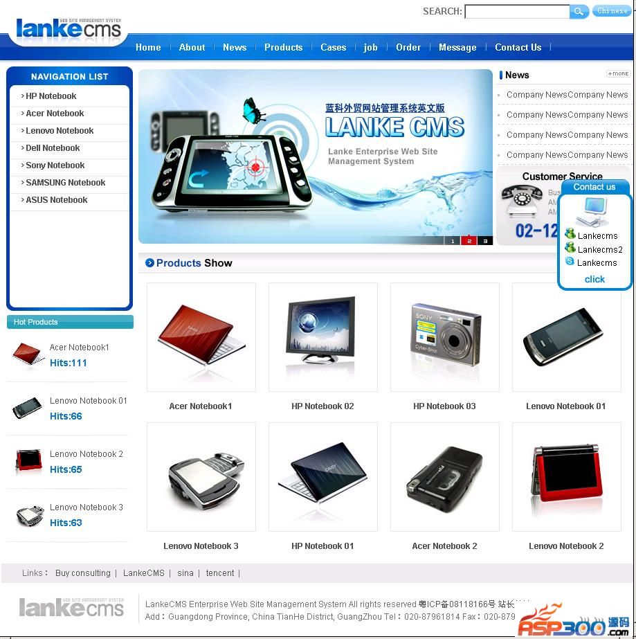 蓝科外贸网站管理系统中英文双语版V1.8 是针对外贸中小企业而开发的具有简单易用、功能强大,性价比高、扩展性好,安全性高、稳定性好的系统,可以加快外贸企业网站开发的速度和减少开发的成本。让不同的用户在懂的少许html语言的基础上,就能够快速的构建一个风格个性化的而功能强大的中英文企业网站。