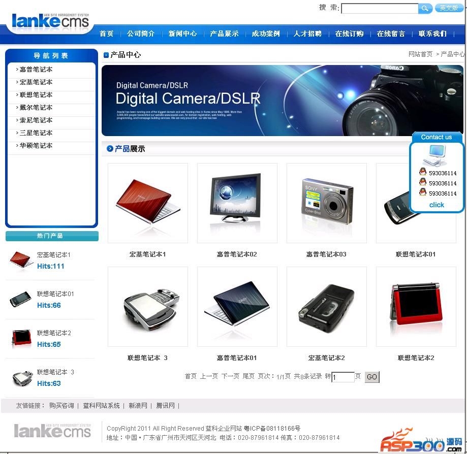 7. 产品搜索:可对客户输入的关键字进行产品搜索,增加了网站的灵活性。
