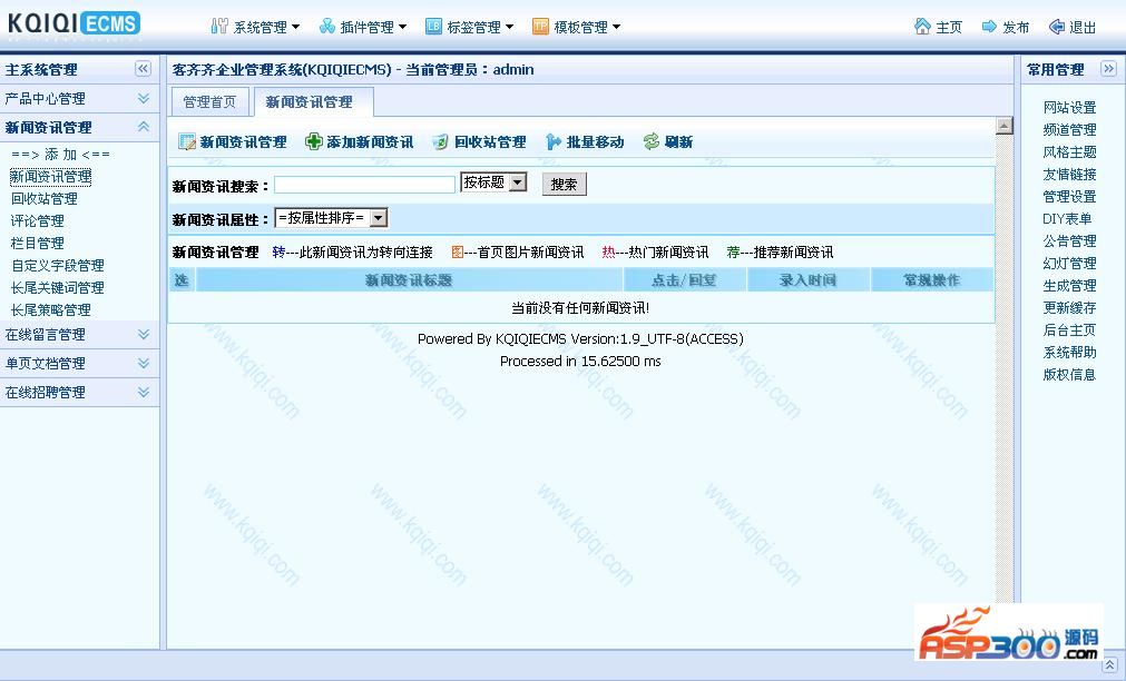 客齐齐企业网站管理系统是基于ASP+Access/Mssql技术开发的企业内容管理系统。系统主模块:产品,资讯,单页面,招聘,留言。产品,资讯,留言,单页模块支持自定义字段。系统列表页支持动态,伪静态。内容页支持动态,伪静态,生成静态。代码和模板分离,让你更轻松的做网站。