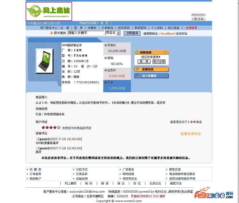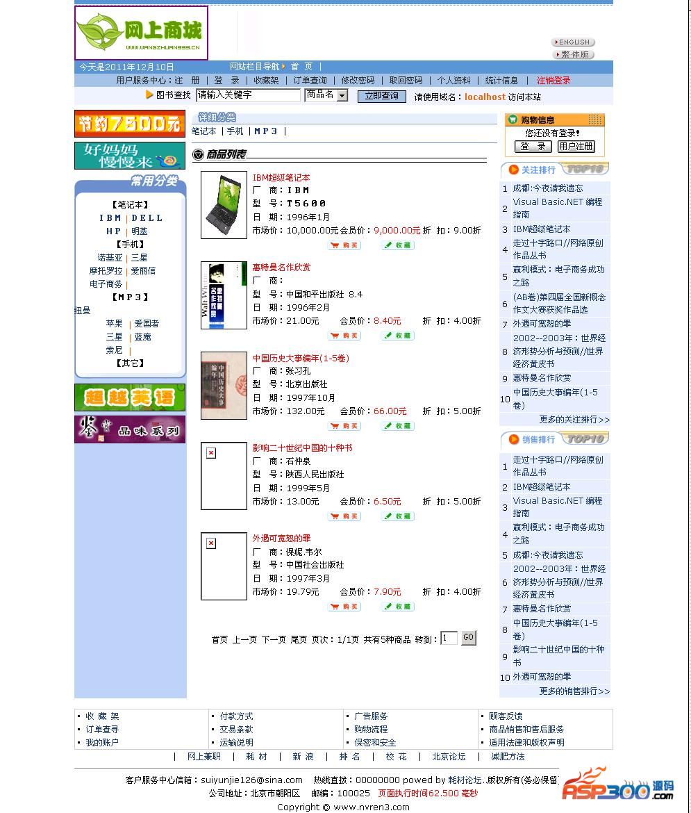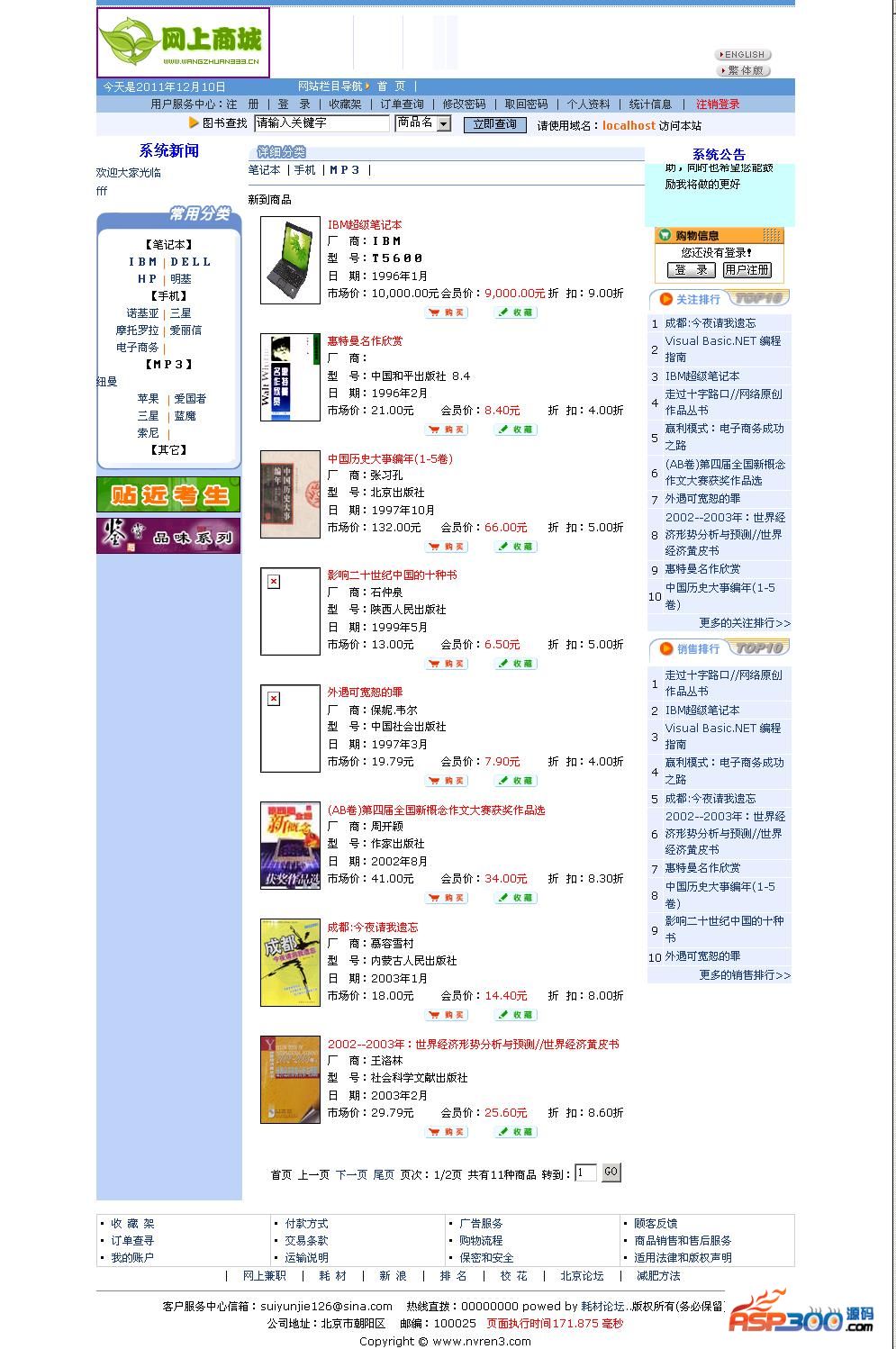 在线商城系统(完整无错修复版) v2.2无功能屏蔽,包括完整的前后台。系统是易于修改的、完全免费的网络商城系统。该系统界面简洁,有专业人士开发,属于较成熟的Asp商城系统。