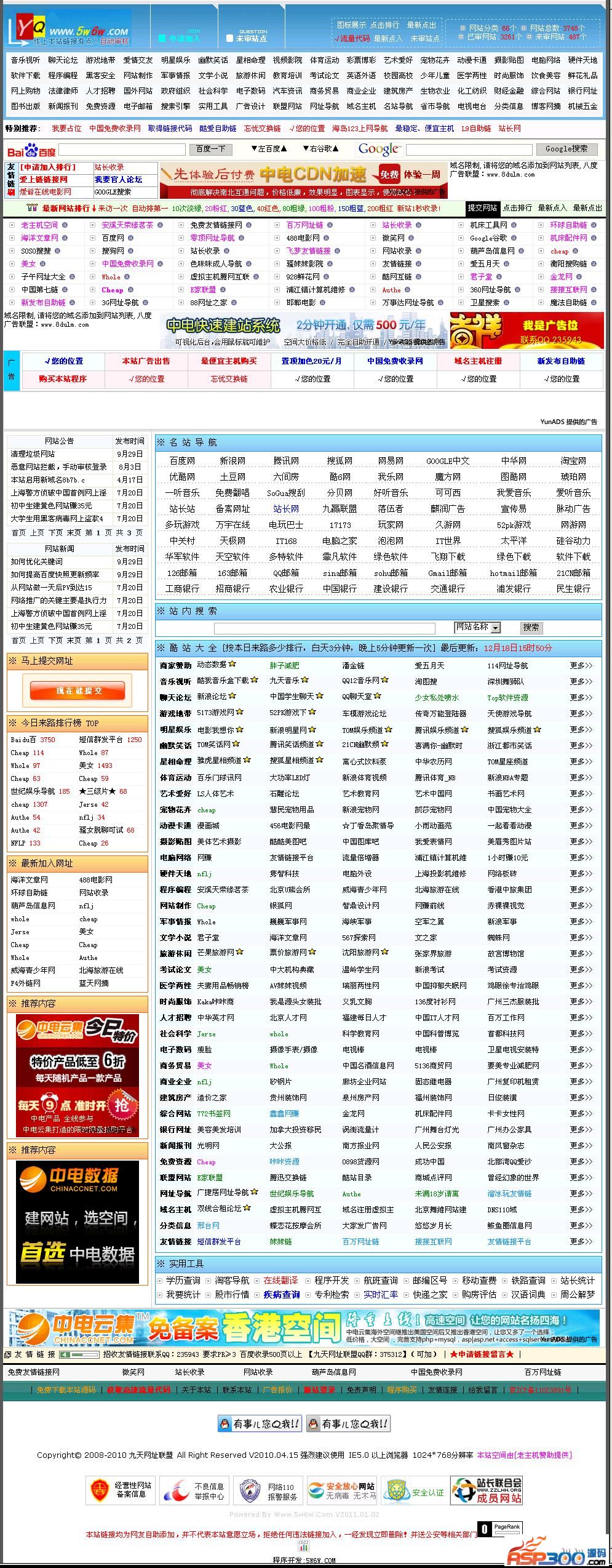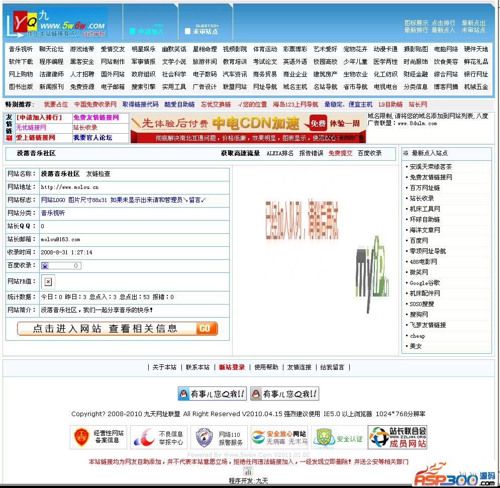 9.常用维护共三项,删除所有未审核的网站,开通所有有点入的网站,删除所有重复提交的网站