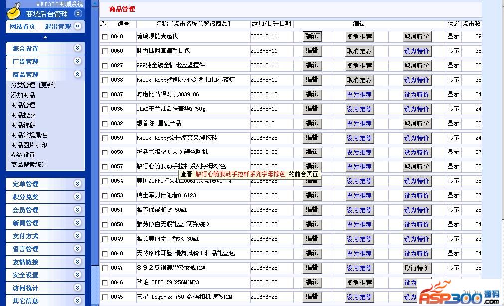 ○后台“会员管理”中可查看会员登陆次数、最后登陆时间、登陆IP、消费总金额,可在线给会员发送普通电子邮件、实时QQ交谈。