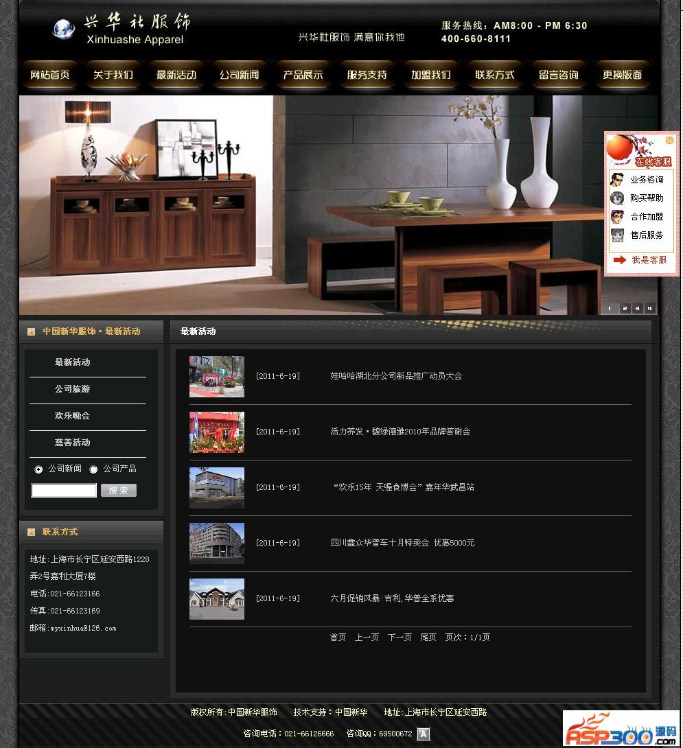 中国新华双语企业网站管理系统--服饰服装8.0更新时间:2015-09-201、增加了QQ客服后台管理功能;2、完善了双语分类功能,可以只添加中文或英文的分类;3、banner幻灯片增加了单独上传图片功能,并可以跳转指定的网址;4、后台单页管理增加了跳转功能,可以跳向别的页面;5、更新了后台编辑器,兼容了win7,win8等系统,以及兼容了360,google等浏览器;6、增加了批量上传图片的功能;7、更换了新闻幻灯片样式。