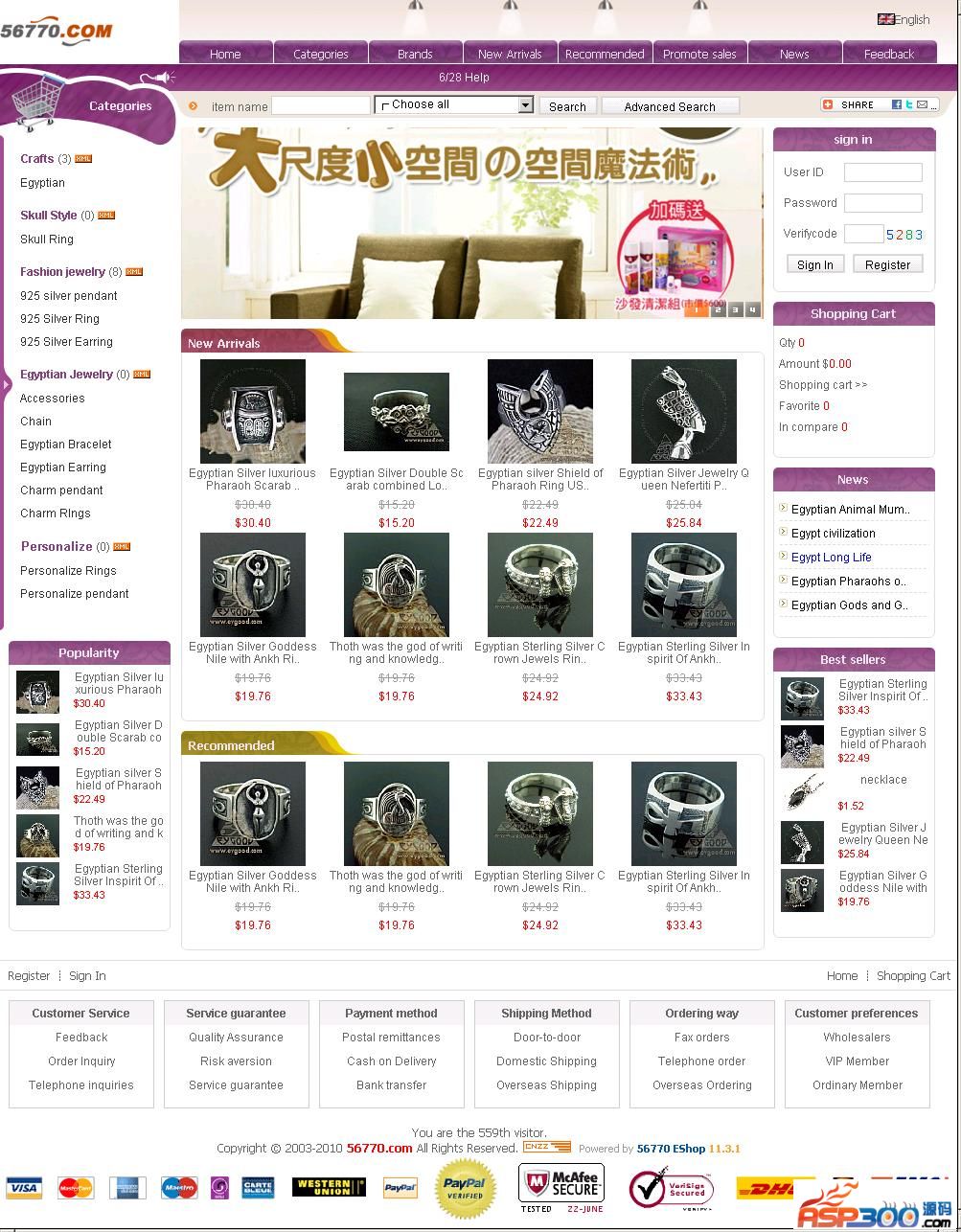 乐彼日文网店系统(56770 EShop)是一款基于Web浏览器和客户端技术的网上开店软件,它把浏览器、客户端和服务器这三种技术无缝结合为一体,界面灵活,功能强大,后台更是和服务器一样稳定、安全、可靠。