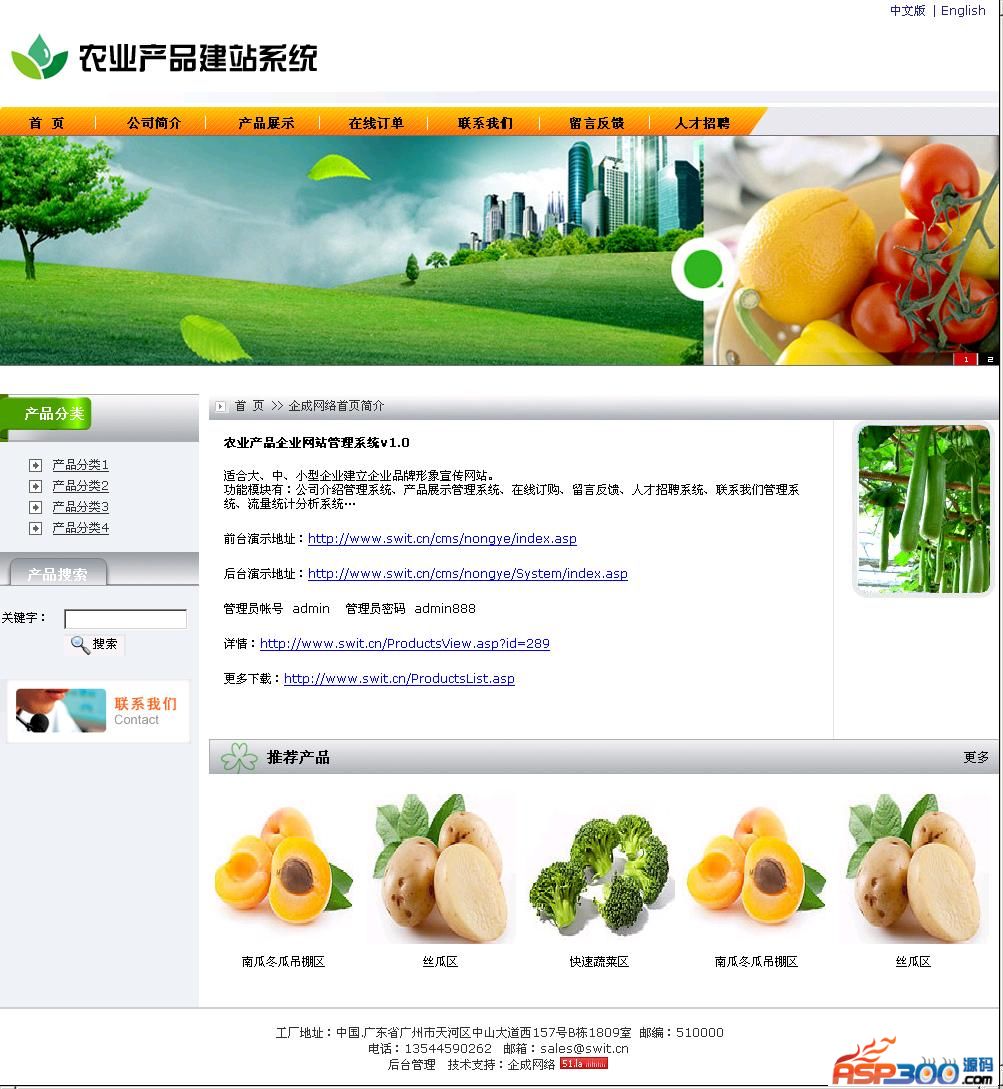 农业产品企业网站管理系统适合大、中、小型企业建立企业品牌形象宣传网站。