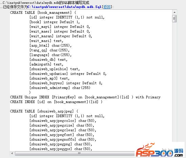 Asp模式可直接生成带表单输入的可执行的Asp文件,用生成的Asp文件即可生成新的数据库