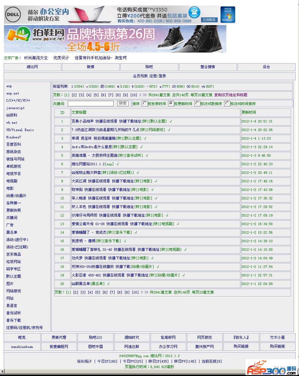 3.打开http://网站地址/update.asp,点下里面的升级版本链接使网站和数据库版本一致。